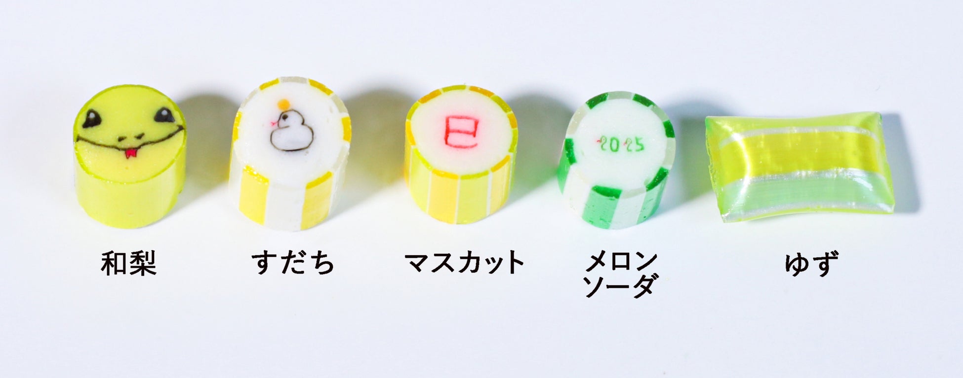 富士山や鏡餅など、これぞ日本のお正月!といった絵柄を詰め込んだキャンディです。「大吉」柄のキャンディを食べれば、おみくじの結果が残念だった方でも2025年の運勢は「大吉」間違いなし。「正月ミックス」「巳年ミックス」の両方が楽しめる、お配り用の「お正月小分けセット」も発売いたします。