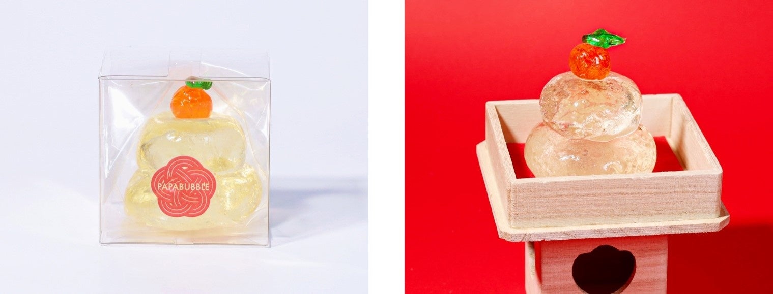 毎年人気の手のひらサイズの鏡餅キャンディが、今年はクリアな質感にリニューアル。しばらく飾った後は、割って皆様で楽しくお召し上がりいただけます。また、今年はグミバージョンの鏡餅も新登場。キャンディよりも柔らかく食べやすいため、お子様にもおすすめです。どちらもお正月らしいみかんフレーバーです。