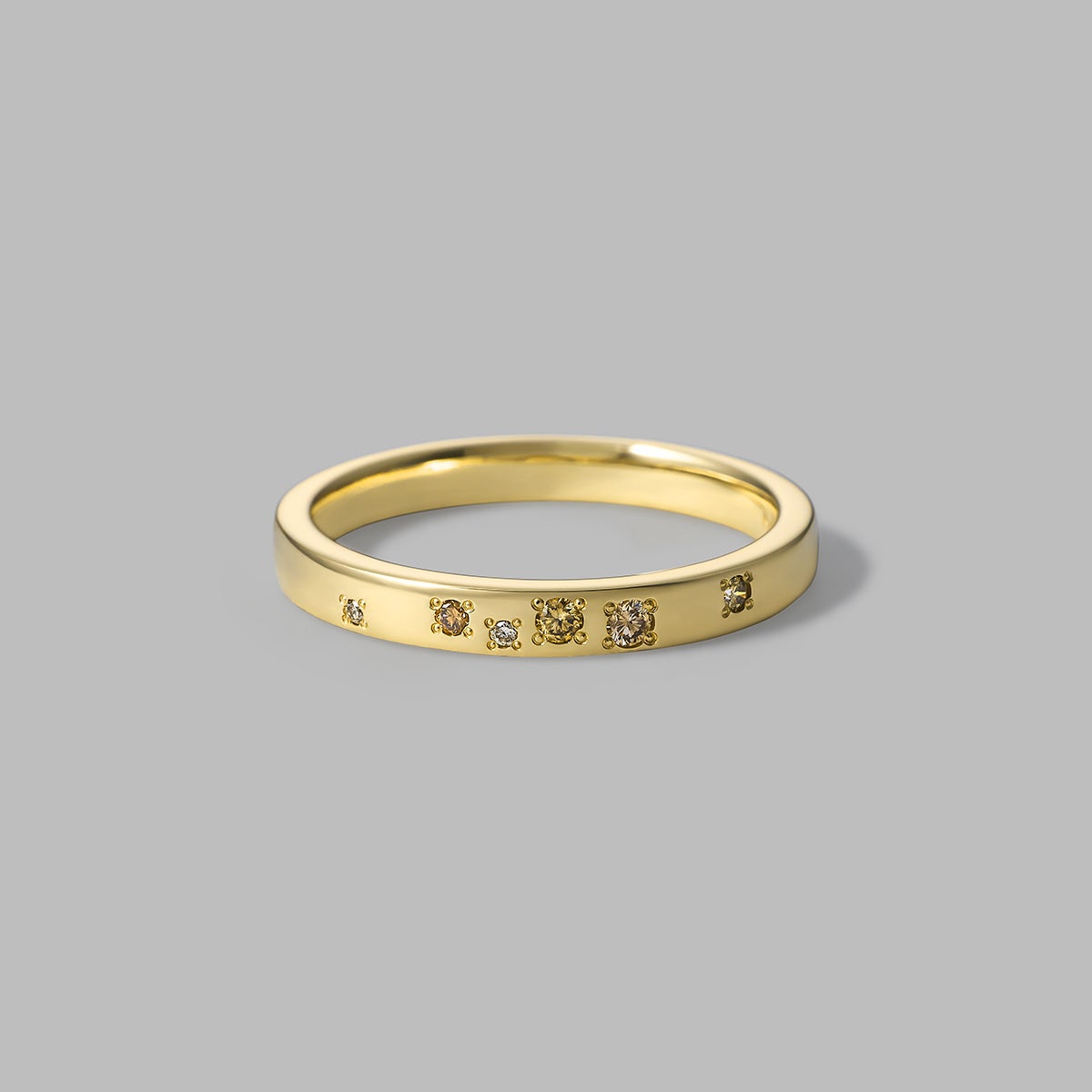 明るさ、カリスマ性、そしてお守りのような力を秘めるといわれるブラウンダイヤモンド。前に進む勇気をそっと与え、自分らしくありたいと願う人の背中を押してくれる宝石です。「The Tidal」のリングは、そんなブラウンダイヤの魅力を、さまざまな形に仕立てて表現しました。さりげないアクセント使いも太めリングで華やかな演出も。その日の気分によってコーディネートを底上げします。