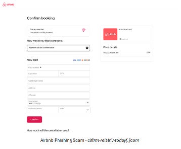 CPRは、「clflrm-relslrlv-today[.]com」というドメインで運営されている、Airbnbになりすましたフィッシングサイトを確認しました。この詐欺サイトは、Airbnbの公式ロゴを使用し、支払いページを精巧に再現して利用者を騙そうとしていました。本物そっくりのサイトで利用者を油断させ、カード番号やセキュリティコード(CVV)、有効期限などの重要な決済情報を入力させて盗み取っていたことが判明しています。なお、このサイトは、現在は閉鎖されています。