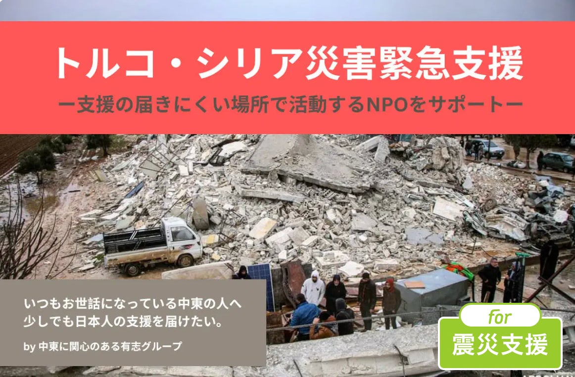 トルコ・シリア地震に対する緊急支援金の募集が、掲載手数料0円のクラウドファンディング「For Good」で開始