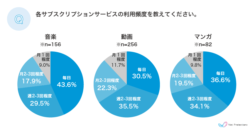 ◆利用頻度は「音楽」「マンガ」「動画」の順に高い