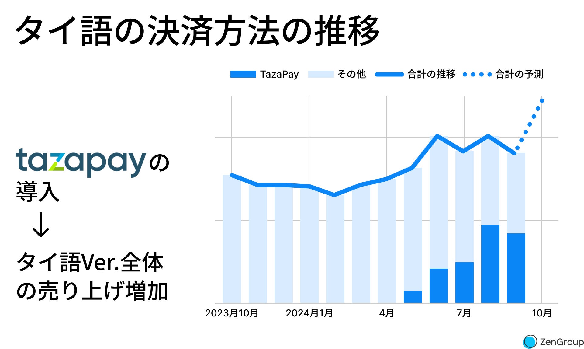 当社では5月にTazaPay(※)を導入。その後、タイ言語バージョンの売上が伸びています。