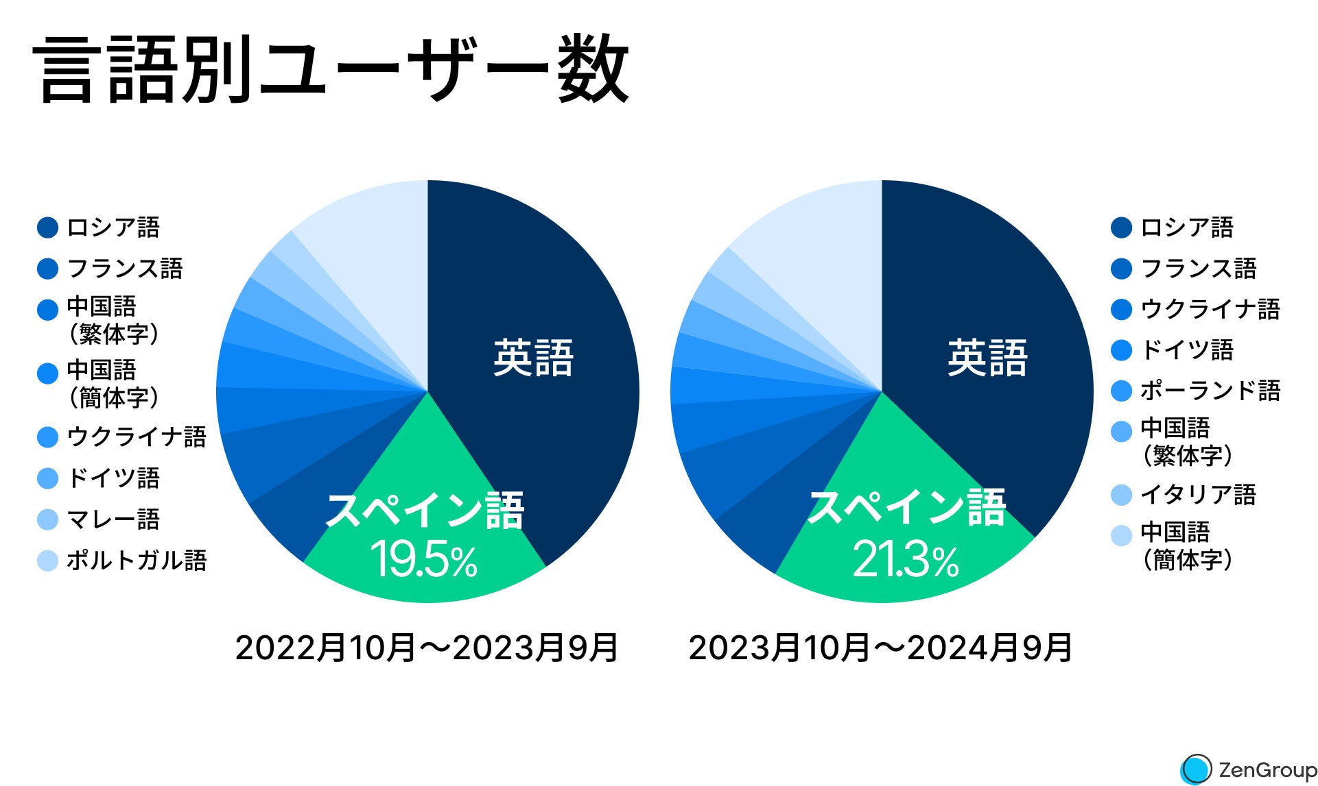 当社のサービスは19言語での展開を行っています。その中でもスペイン語圏市場の発展が顕著です。日本の製品が非常に人気を集めていることを示しています。