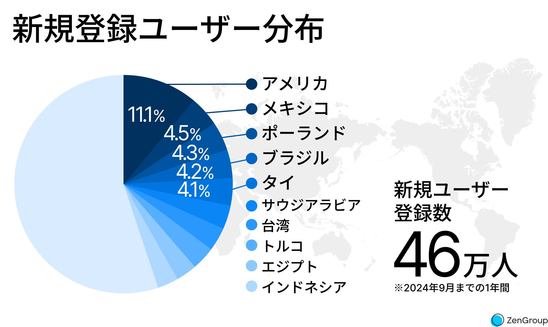 2023年10月から2024年9月にかけて、新規登録ユーザーは46万人をこえています。