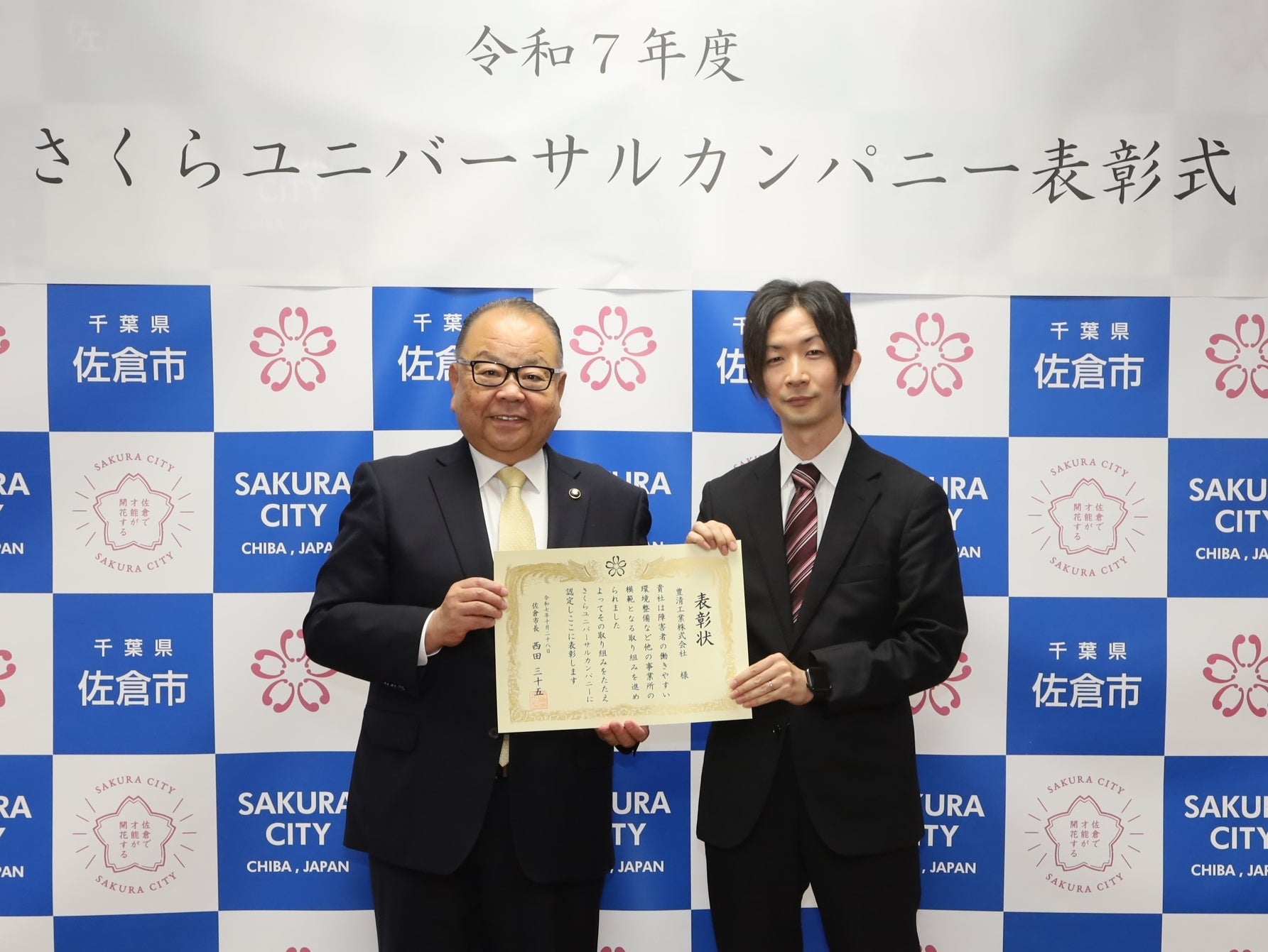 令和7年度さくらユニバーサルカンパニー表彰式を行い、「豊清工業株式会社」が「さくらユニバーサルカンパニー」として表彰されました。