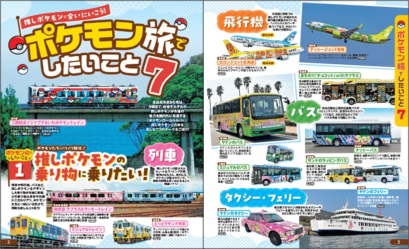 巻頭特集では、「ポケモン旅でしたいこと7」と題して、「乗り物」や「公園」、「コラボ商品」、「宿泊」などポケモン旅で絶対おさえておきたい7つのテーマをご紹介。他にも各地域の推しポケモンがひと目でわかる「早わかりMAP」や、新たに仲間入りした長崎県・沖縄県の推しポケモン情報など最新情報をまとめた「NEWS & TOPICS」も要チェックです。
