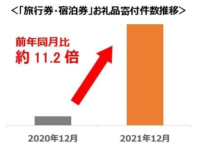 ■2021年12月の「旅行券宿泊券」カテゴリお礼品の登録数が前年同月比で約11.2倍に増加!