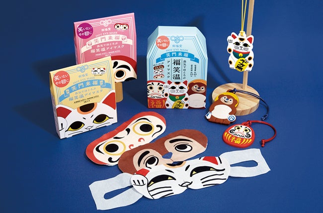 第1弾として、日本古来から縁起物といわれている[招き猫][だるま][たぬき]をモチーフに、思わずほっこり笑みがこぼれるような「福飾り」と「ホットアイマスク」が新登場。