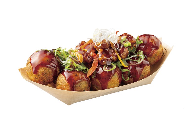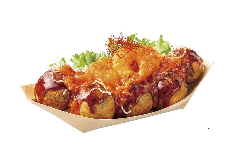 日本が誇るファストフード「たこ焼」と本格中華が華やかにマッチ。ゴロッとサイズの焼豚を黒酢で仕上げた特製酢豚を贅沢に乗せた限定たこ焼です。