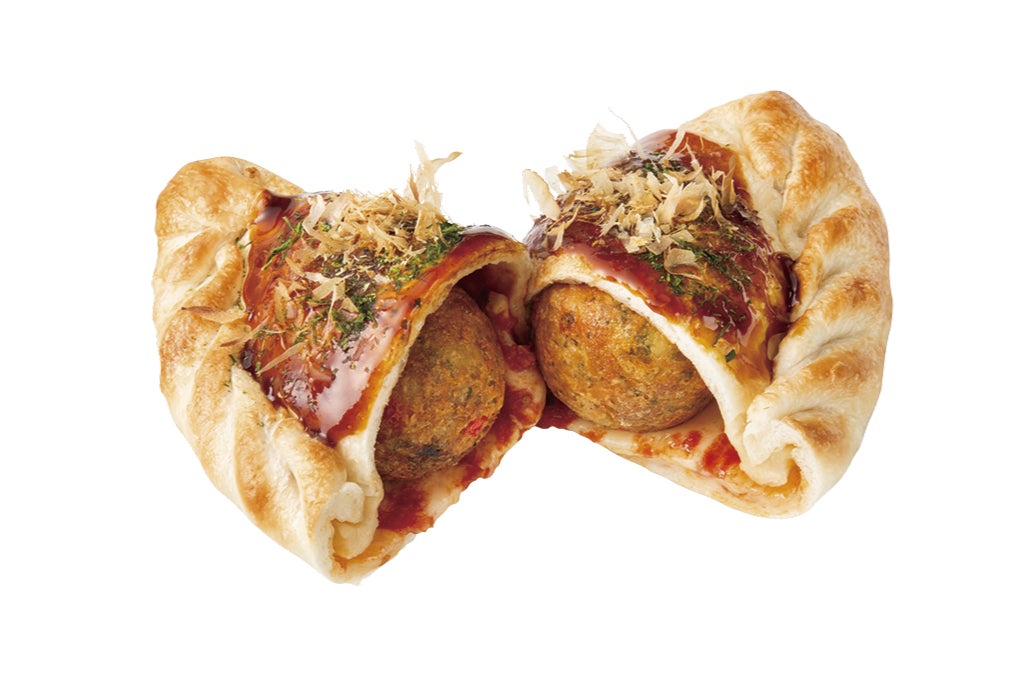 片手で持って食べやすいカルツォーネは、イタリアでも人気のストリートフード。割ると中から銀だこのたこ焼と一緒にトマトソース&チーズがとろ~り。
