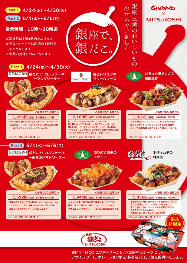 【 築地銀だこ × 銀座三越 】 “ぜったいうまい!! たこ焼” に、銀座三越のおいしいもの のせちゃいました! 4/24 (水)より期間限定で発売!