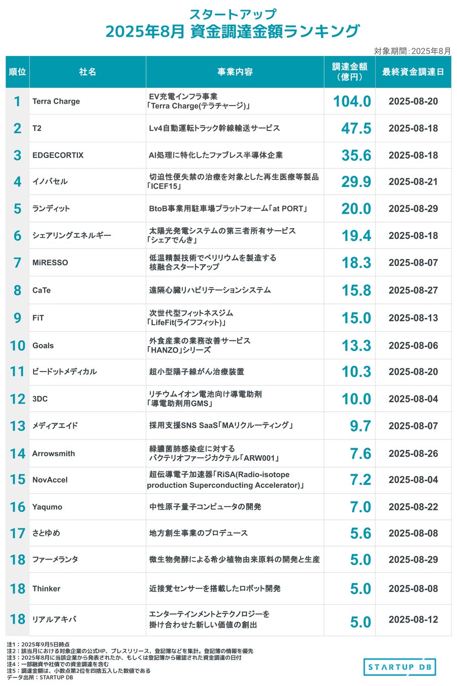 ・レポート記事:STARTUP DB (https://journal.startup-db.com/articles/funding-ranking-202508)