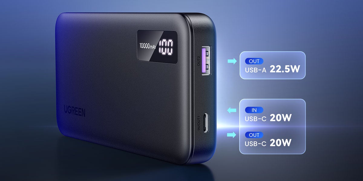 UGREEN 10000mAh 2way 急速充電モバイルバッテリー 20W | 1%刻みで残量をLED表示