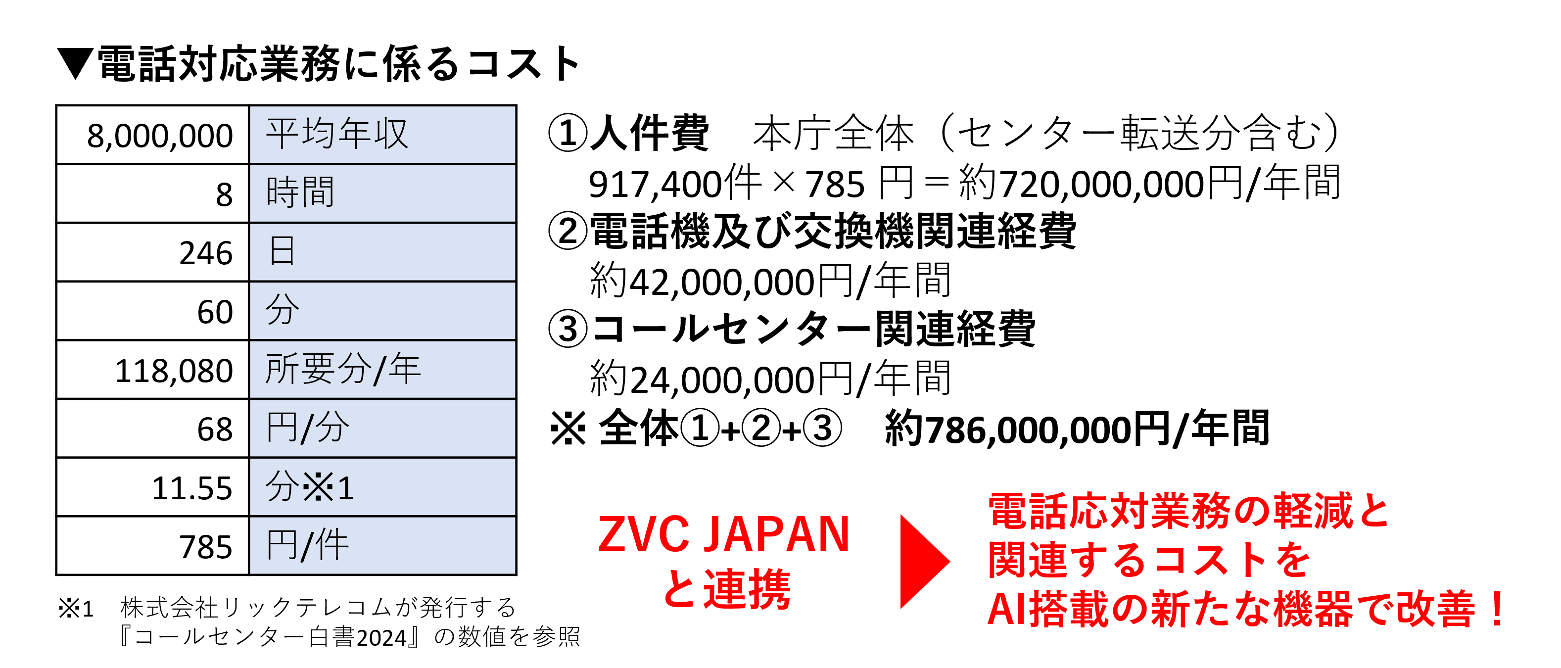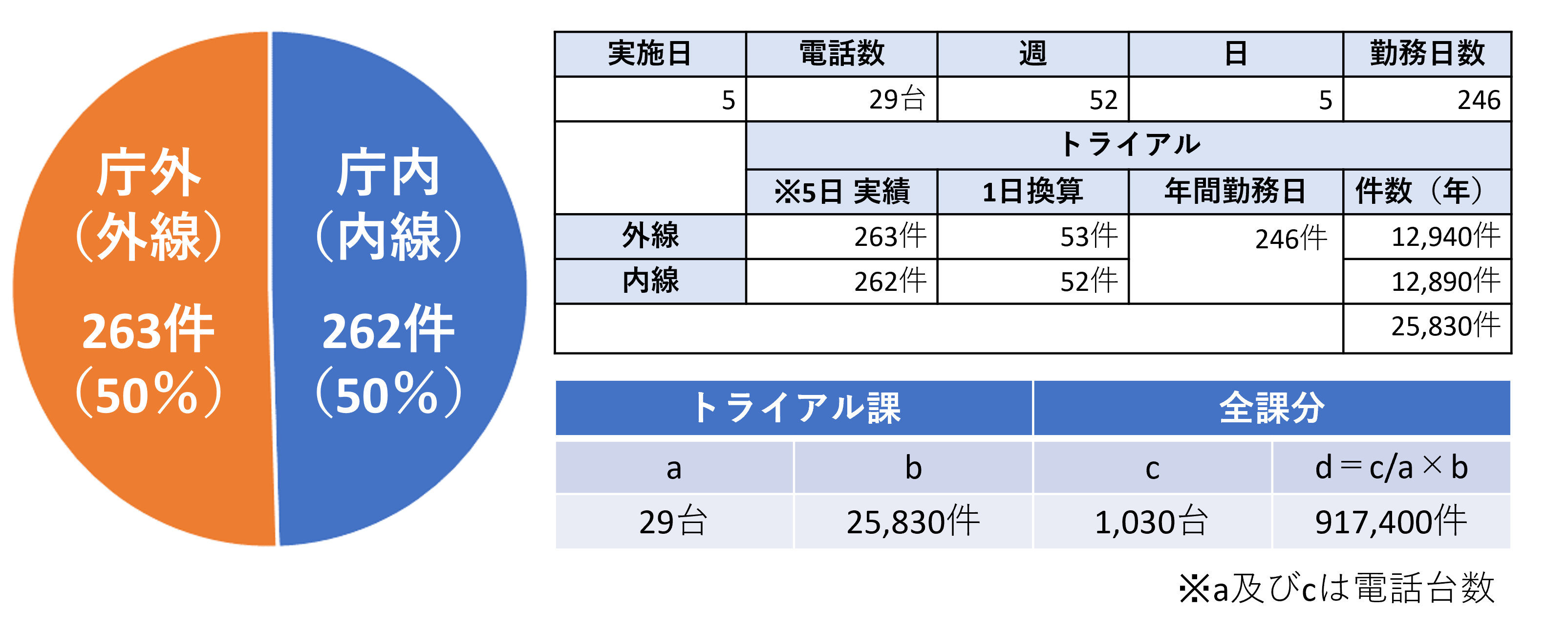 税務担当課:5日間のトライアルから算出した年間の電話件数と費用(推計値)