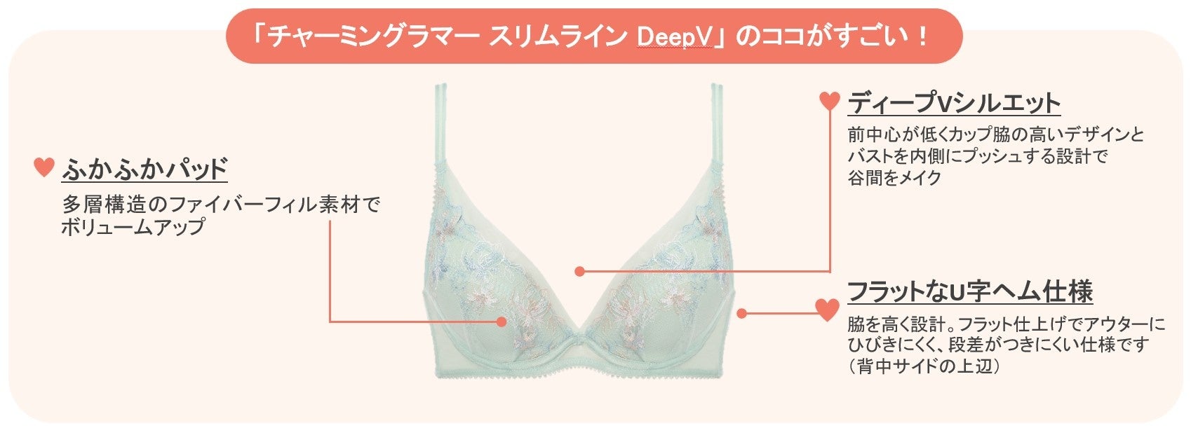 谷間くっきり&脇スリムな「チャーミングラマー スリムライン DeepV」もチェック!