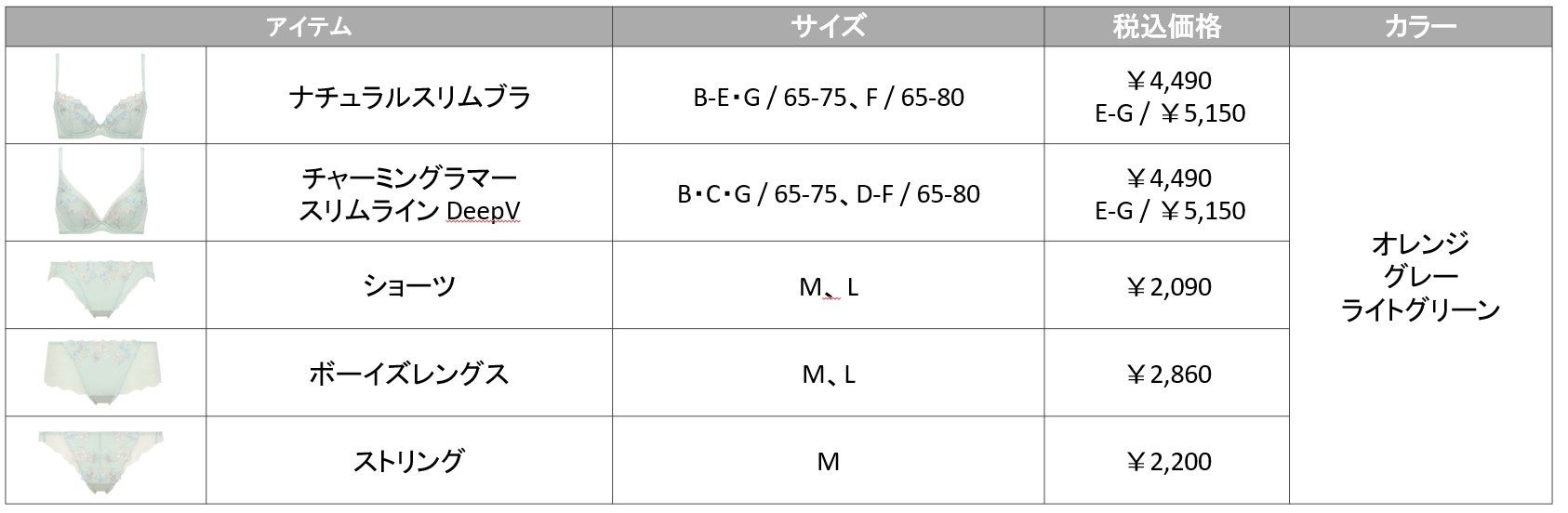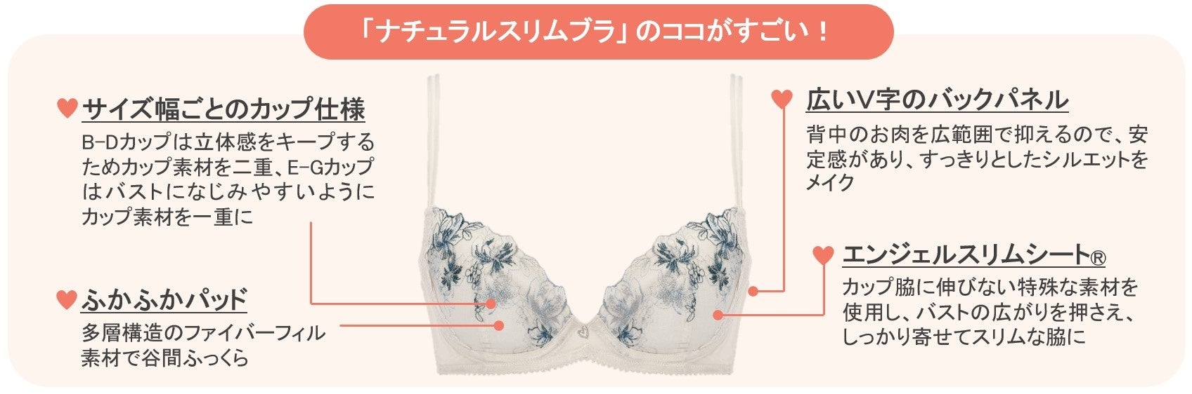 2タイプご用意したブラジャーには、注目のフィット「ナチュラルスリムブラ」と、360度パーフェクトシルエット&くっきり谷間の「チャーミングラマー スリムライン DeepV」が登場です!