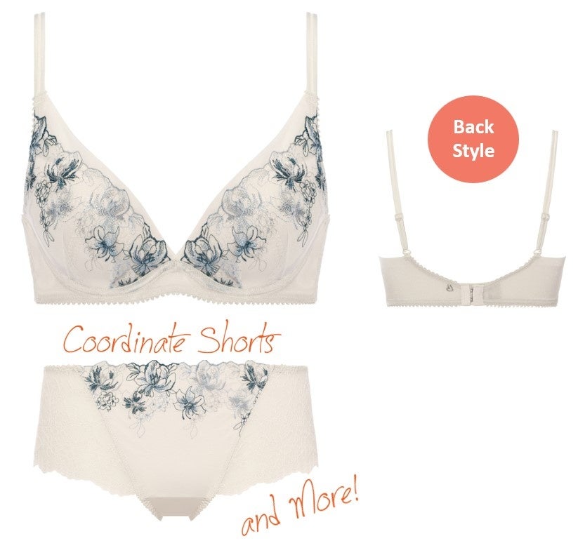 バストを内側にプッシュして寄せるカップパターンをシャープなラインで設計した「ディープVシルエット」を採用。脇が高く設計され、U字ヘム仕様のフラット仕上げで、脇や背中の段差がおさえられ、アウターをすっきり着こなせます。多層構造のふかふかパッドで、谷間もふっくら!360度パーフェクトなシルエットを叶えます。パッドは取り外しできるので、お好みでボリュームの調整が可能です。