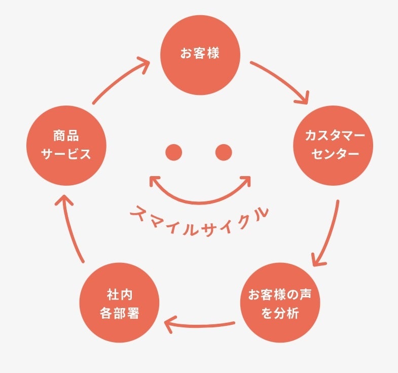 さらに、お客様が正しい知識に基づいて商品を選択するためのサポートとなるよう、商品および食の安全・安心に関する適切な情報の発信やコミュニケーションにも積極的に取り組んでいきたい考え、CS向上委員会を設置。CS向上委員会では、スマイルサイクルの方針の下、お客様の声を源泉とし商品改良等を行うことで企業の成⾧に役立てることを目的としています。