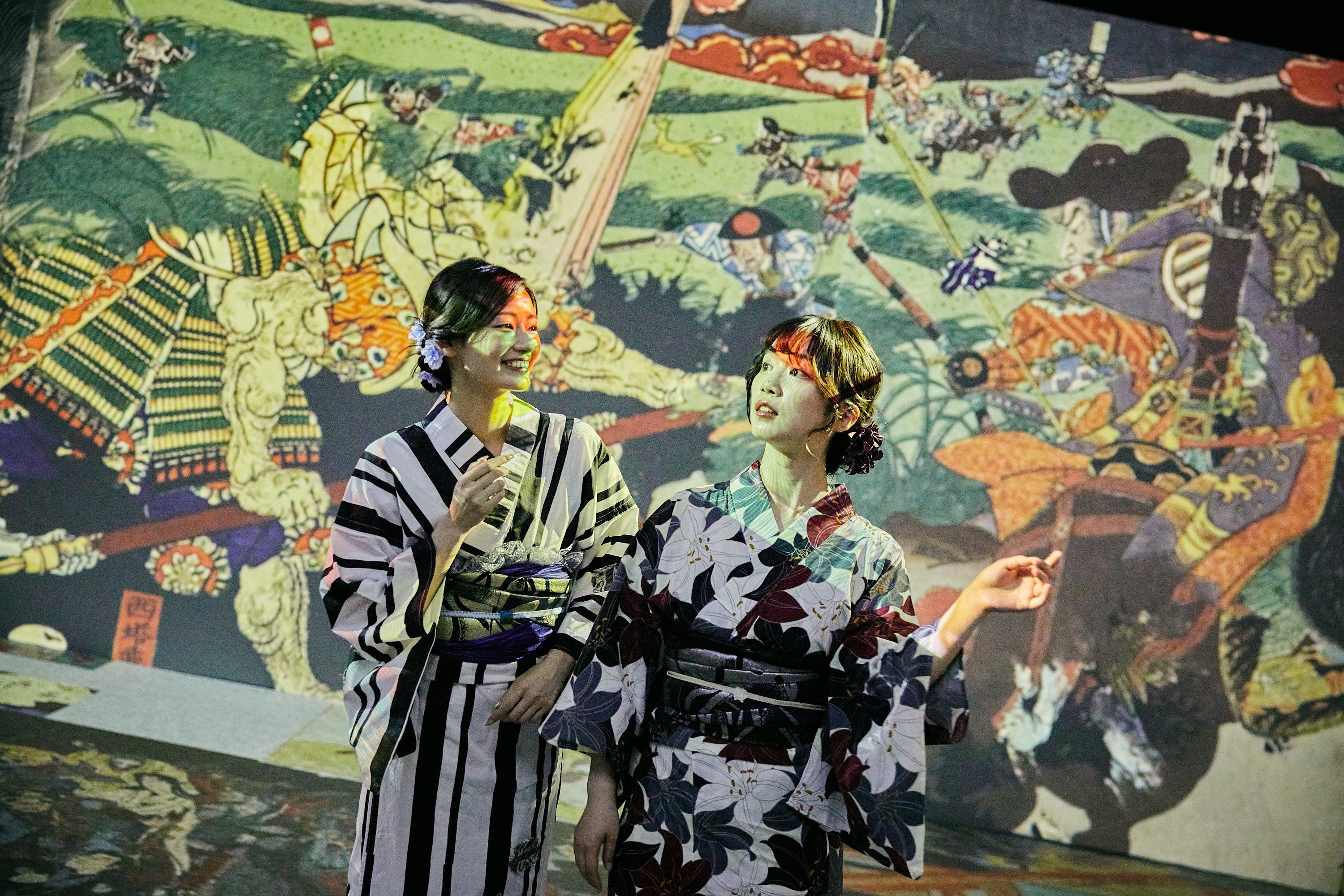 鑑賞するだけでなく、妖怪たちと一緒に動画や写真撮影をしたり、妖怪絵巻の一部となって異世界に迷い込む没入体験が楽しめます。
