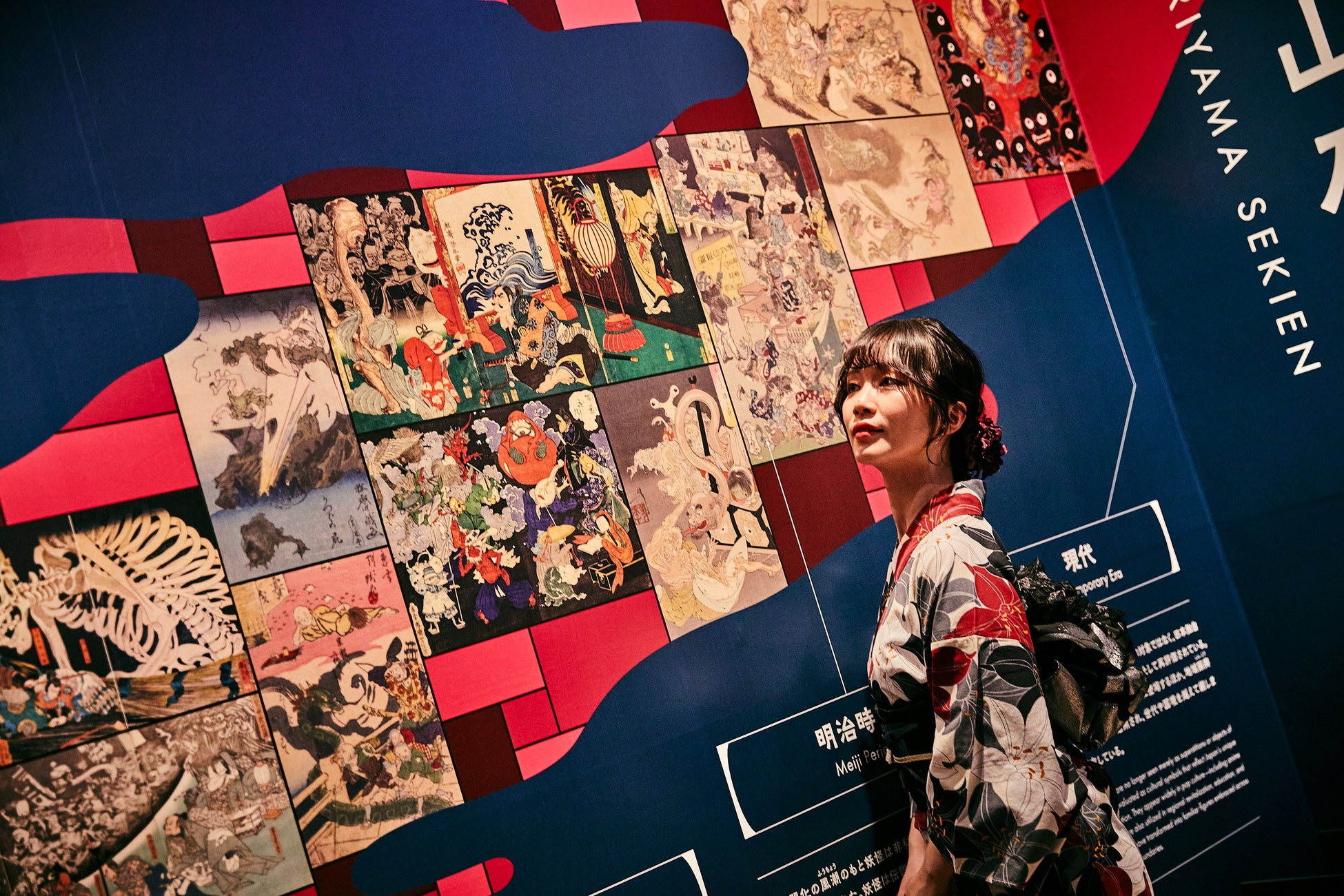 江戸・明治時代など様々な絵師によって描かれた「百鬼夜行絵巻」「百物語」「鬼」「天狗」「河童」「付喪神」などの日本が誇る妖怪美術に最先端の映像技術と立体造形で没入できる世界初のイマーシブ体感型デジタルアートミュージアムです。