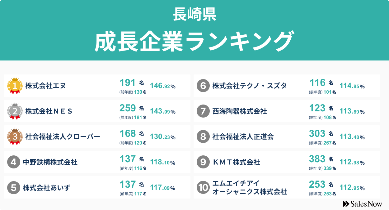 【長崎県】成長企業ランキングTOP50!/SalesNow DBレポート