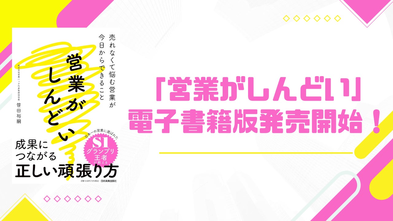 【営業がしんどい人を助ける】書籍「営業がしんどい 売れなくて悩む営業が今日からできること」大好評につき電子書籍版発売開始!