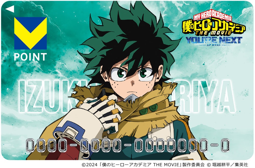 『僕のヒーローアカデミア THE MOVIE ユアネクスト』の公開を記念し、緑谷出久、爆豪勝己、轟焦凍のVポイントカードが登場!Vポイントカードの券面はモバイルVカード(スマートフォンアプリ)でデザイン表示ができます♪