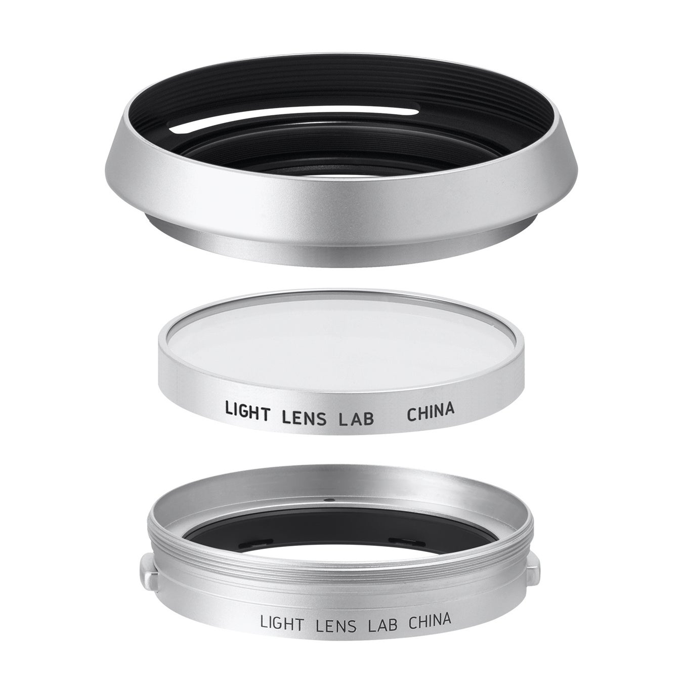 レンズフード 12504 を再現した「L-12504-B」に、新色シルバーカラーが登場しました。本体は真鍮製で、質感が高く高級感のある仕上がりとなっています。取り外し可能なUVフィルター(シリーズ7)は、撥水・防汚効果のあるマルチコーティングが施され、水や指紋が付いても容易に拭き取ることができます。また、フードにフィルターが内蔵されるため、フィルター枠がないレンズの前面も保護できます。