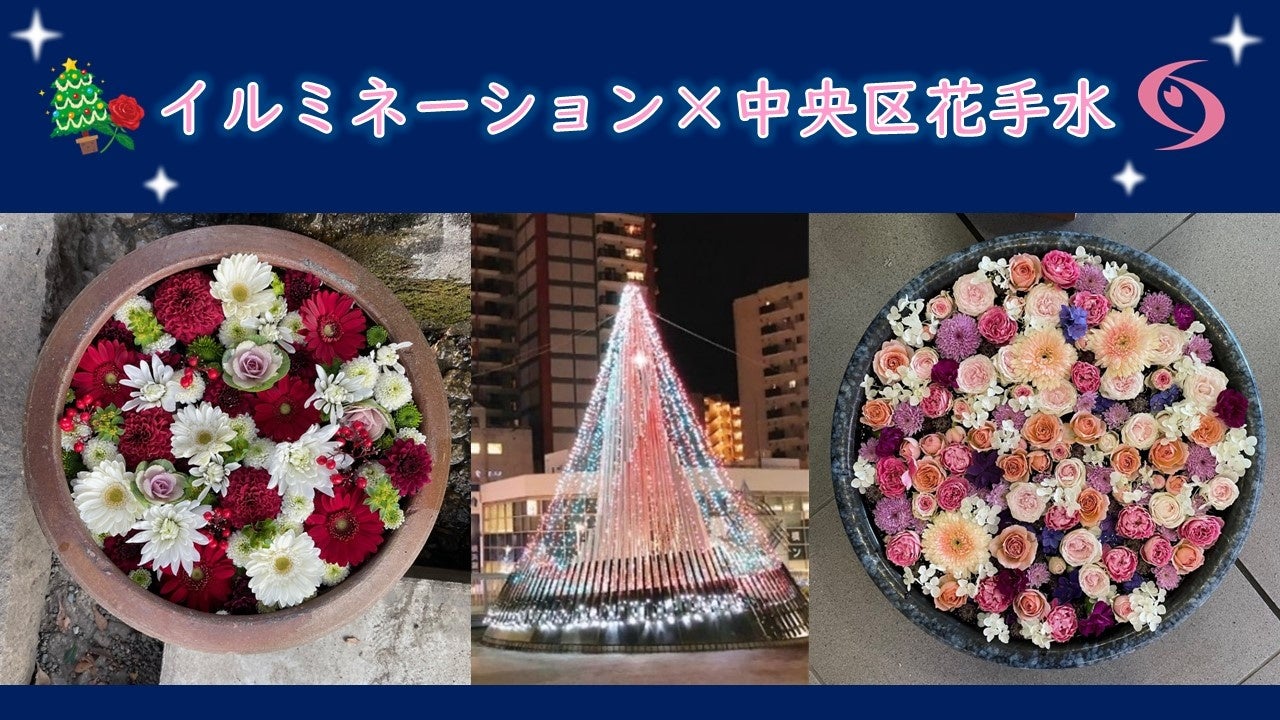 【相模原市中央区】『イルミネーション×中央区花手水』を初開催!キラキラ輝く花手水がクリスマスシーズンの街を彩ります