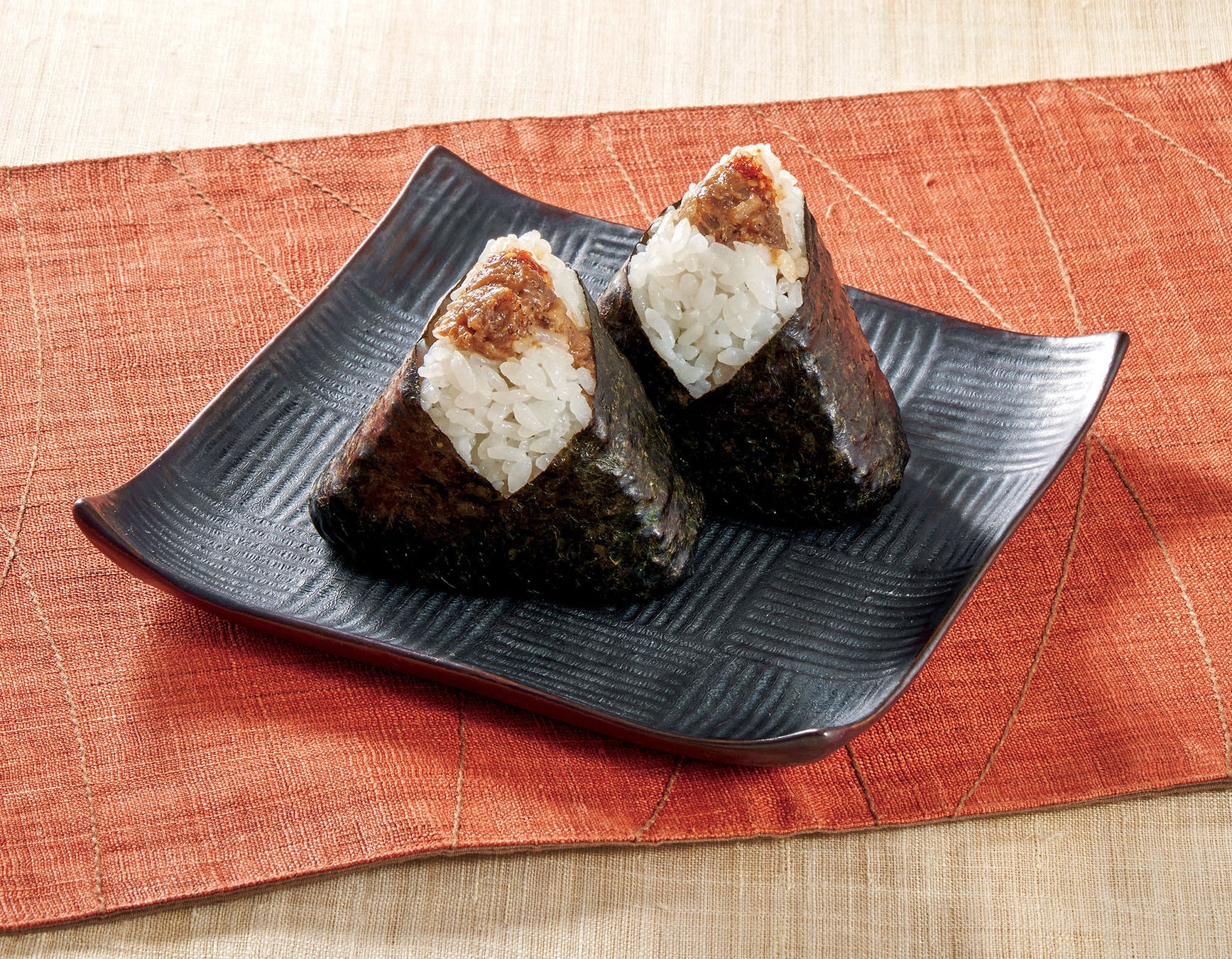 ■商品特徴:6月にリニューアルした日本ばし大増の牛肉弁当をイメージしたおむすびです。