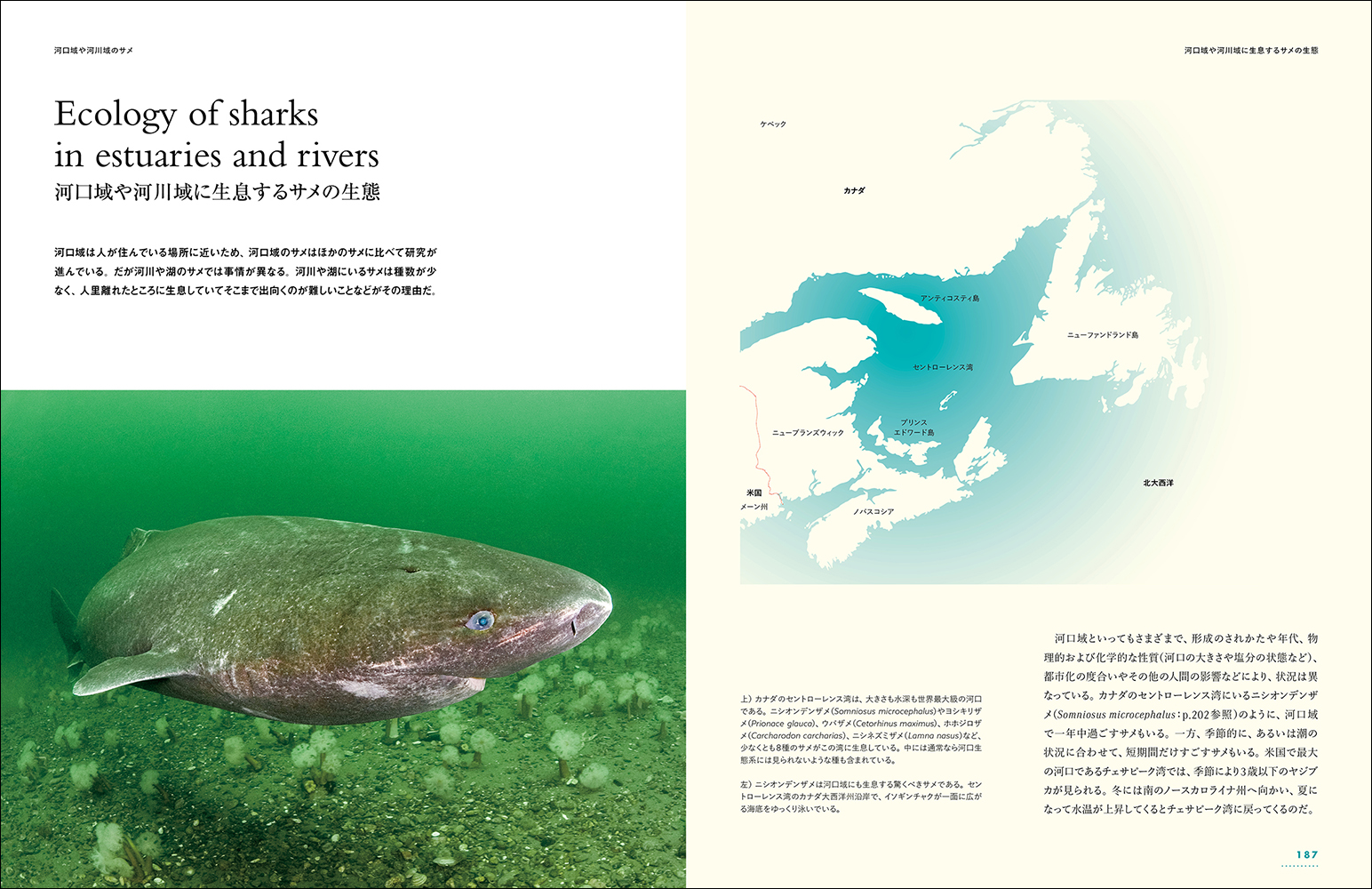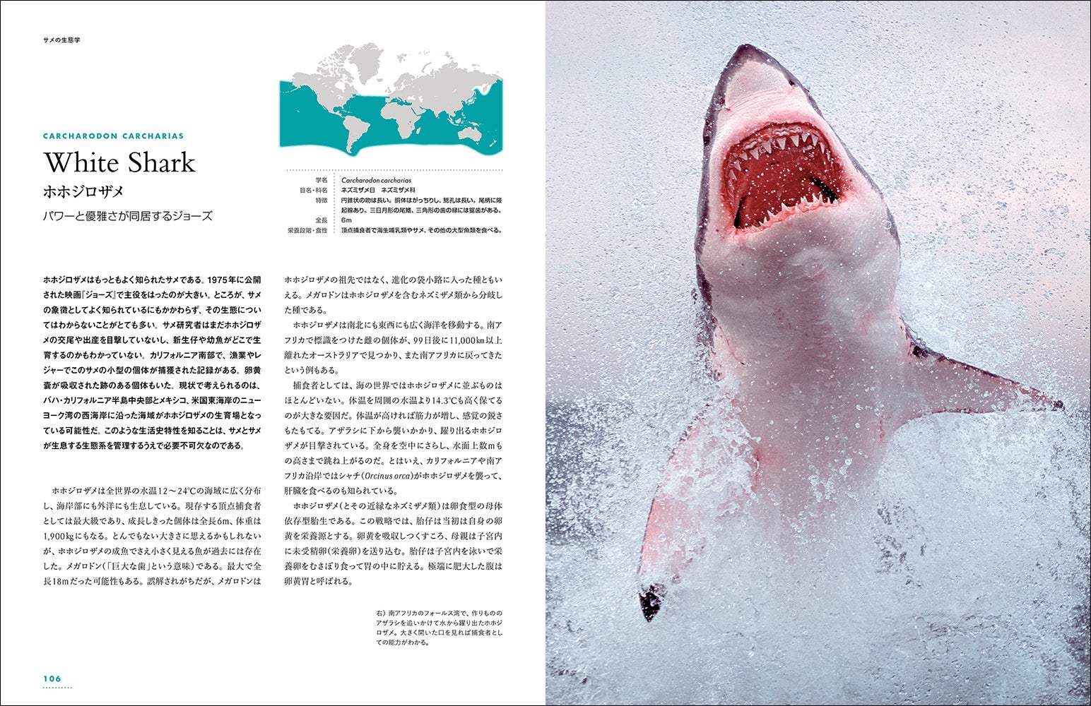 サメの進化と多様性/サメの適応/サメの生態学/外洋のサメ/河口域や河川域のサメ/大陸棚のサメ/サメとわたしたち/深海のサメ/ 用語解説/参考文献/