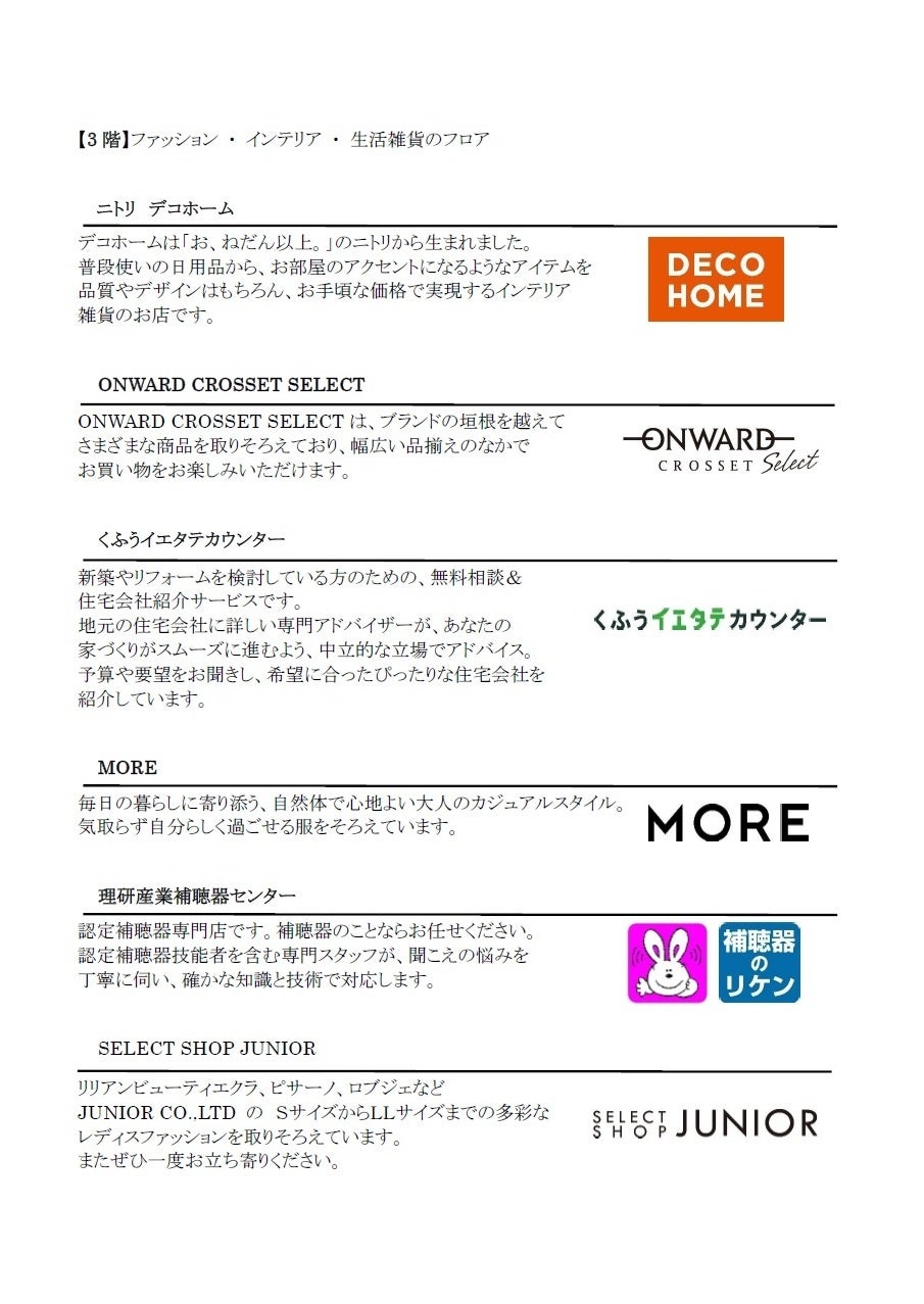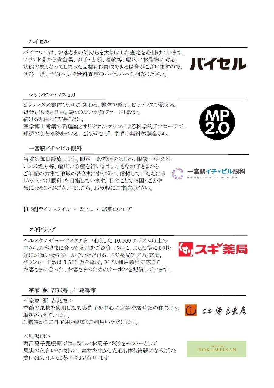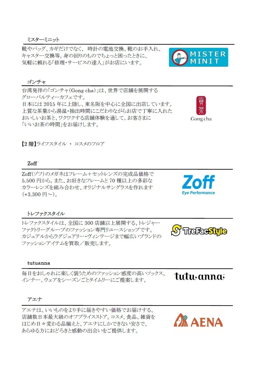 入居テナント詳細 ※新たに公表するテナントのみ