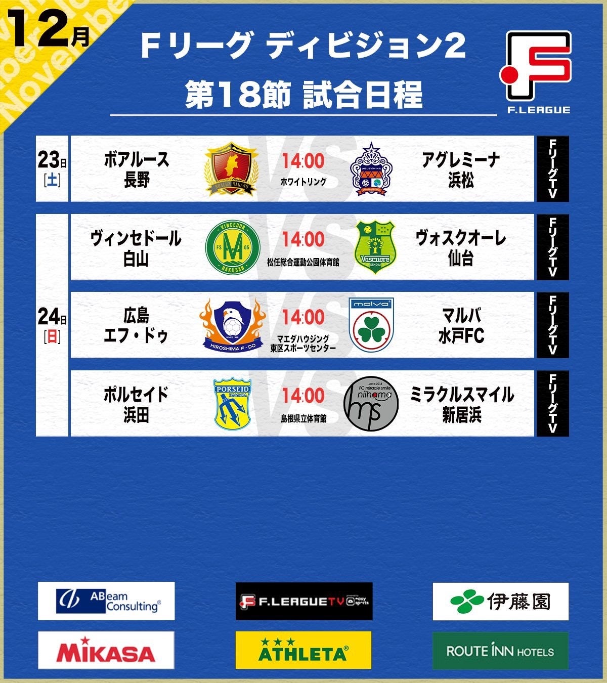 14:00 キックオフ 長野 vs. 浜松 ▶▶https://fleague.stores.play.jp/lives/d25138eb-f52d-42df-a17f-24002447d08a