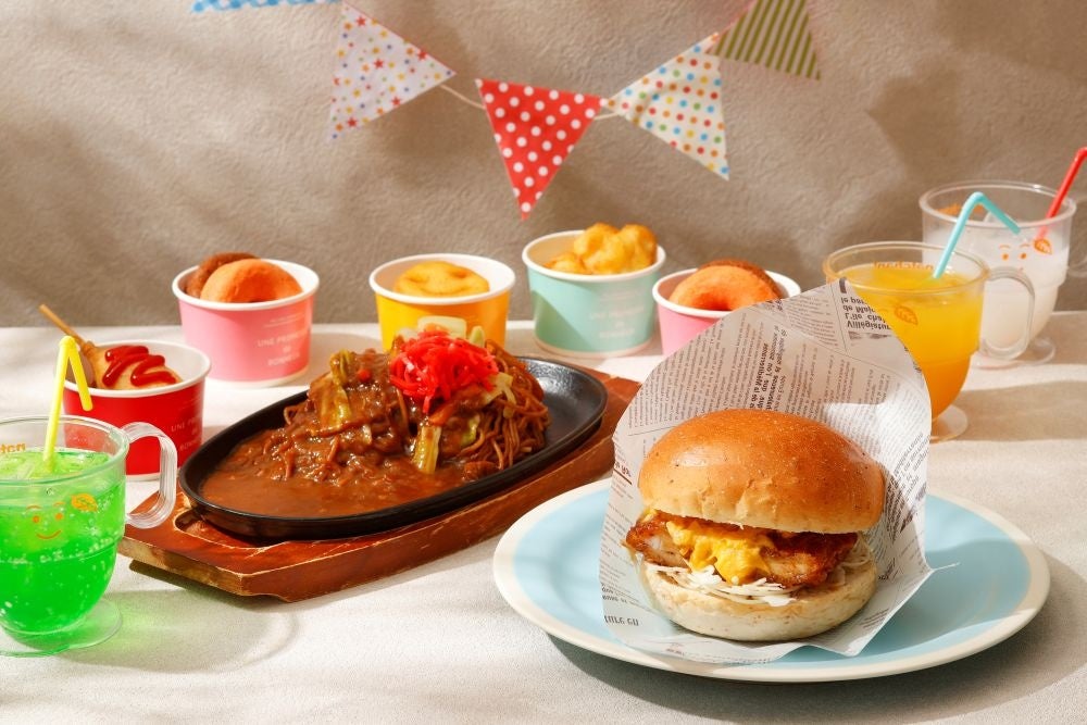 カレー焼きそば、柳津風ソースかつバーガー 夏祭り子供バイキング(たこ焼き、スマイルポテト、焼きドーナツ等) ※提供場所:ビュッフェレストラン「あがらんしょ」 |