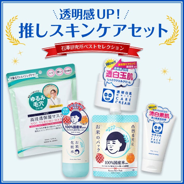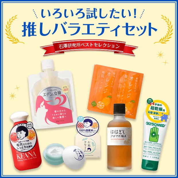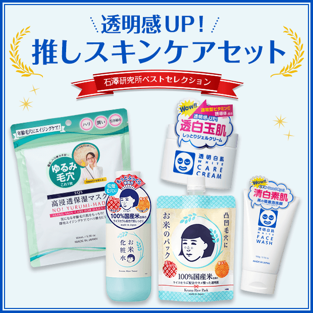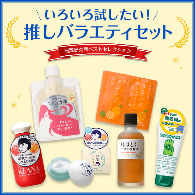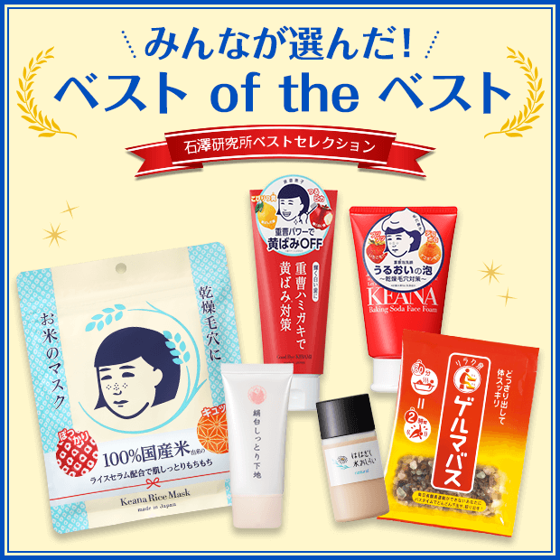 その中でも上位にランクインしたアイテムをギュッと集めました。圧倒的1位に輝いた「お米のマスク」に、通販で根強いファンをもつ水ファンデ「ははぎく水おしろい」など、実力派揃いのセットです。