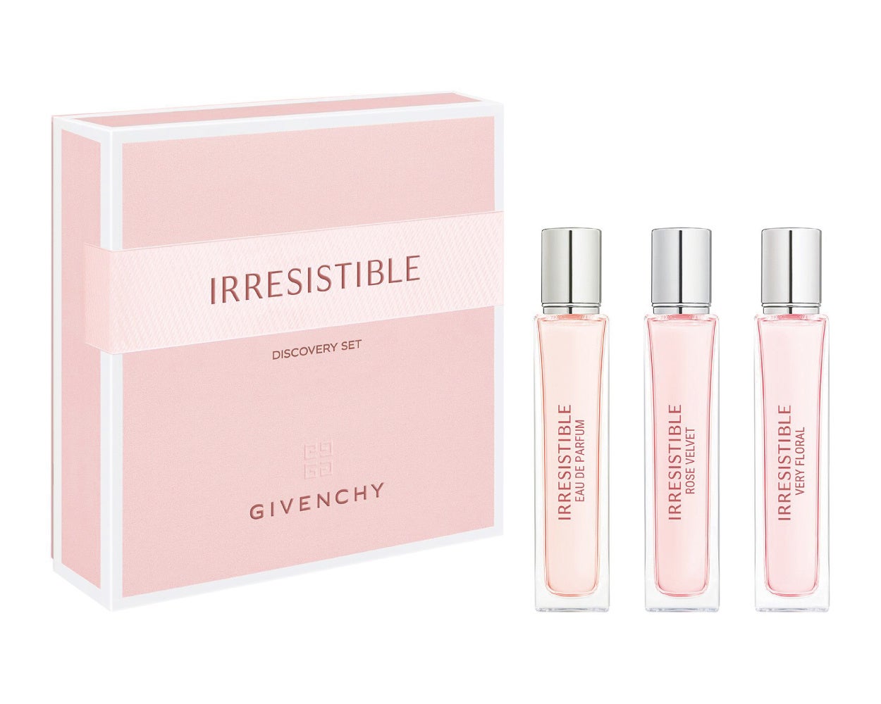 セット内容:イレジスティブル オーデパルファム 12.5mL(トラベルサイズ)、イレジスティブル オーデパルファム ローズ ベルベット 12.5mL(トラベルサイズ)、イレジスティブル オーデパルファム ヴェリィフローラル 12.5mL(トラベルサイズ)
