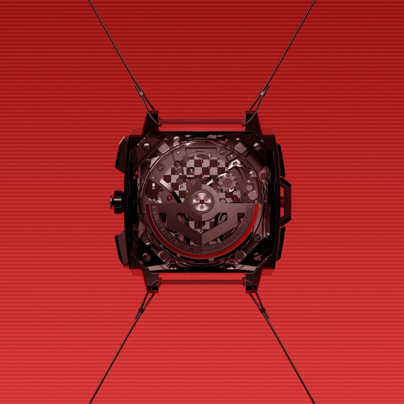 ローターはタグ・ホイヤーを象徴するシールド型に造られており、サテン仕上げで、力強いレッド、またはブルーのグラデーション塗装を手作業で施しています。これはタグ・ホイヤーのタイムピースのなかでも極めて限られたタイムピースにのみ採用される象徴的なデザインです。