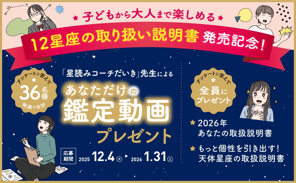 抽選にて各星座3名様(計36名様)に本書の著者「星読みコーチだいき」先生による