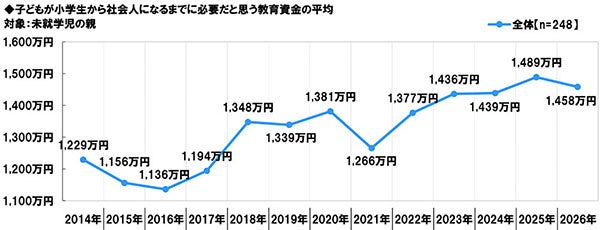 ・小学生から社会人になるまでに必要な教育資金 平均予想金額は1,458万円、