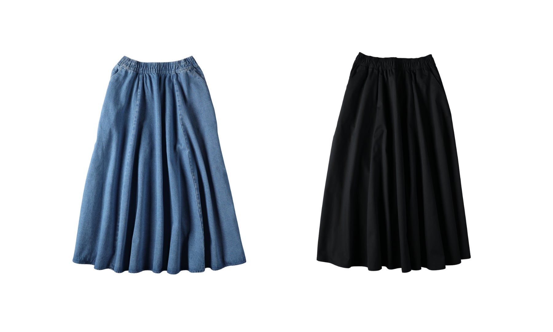 広げると円形になるサーキュラースカートは、裾に向かってフレアに広がるシルエットが特徴。ボリュームのあるスカートなのでタイトなトップス合わせがおすすめです。