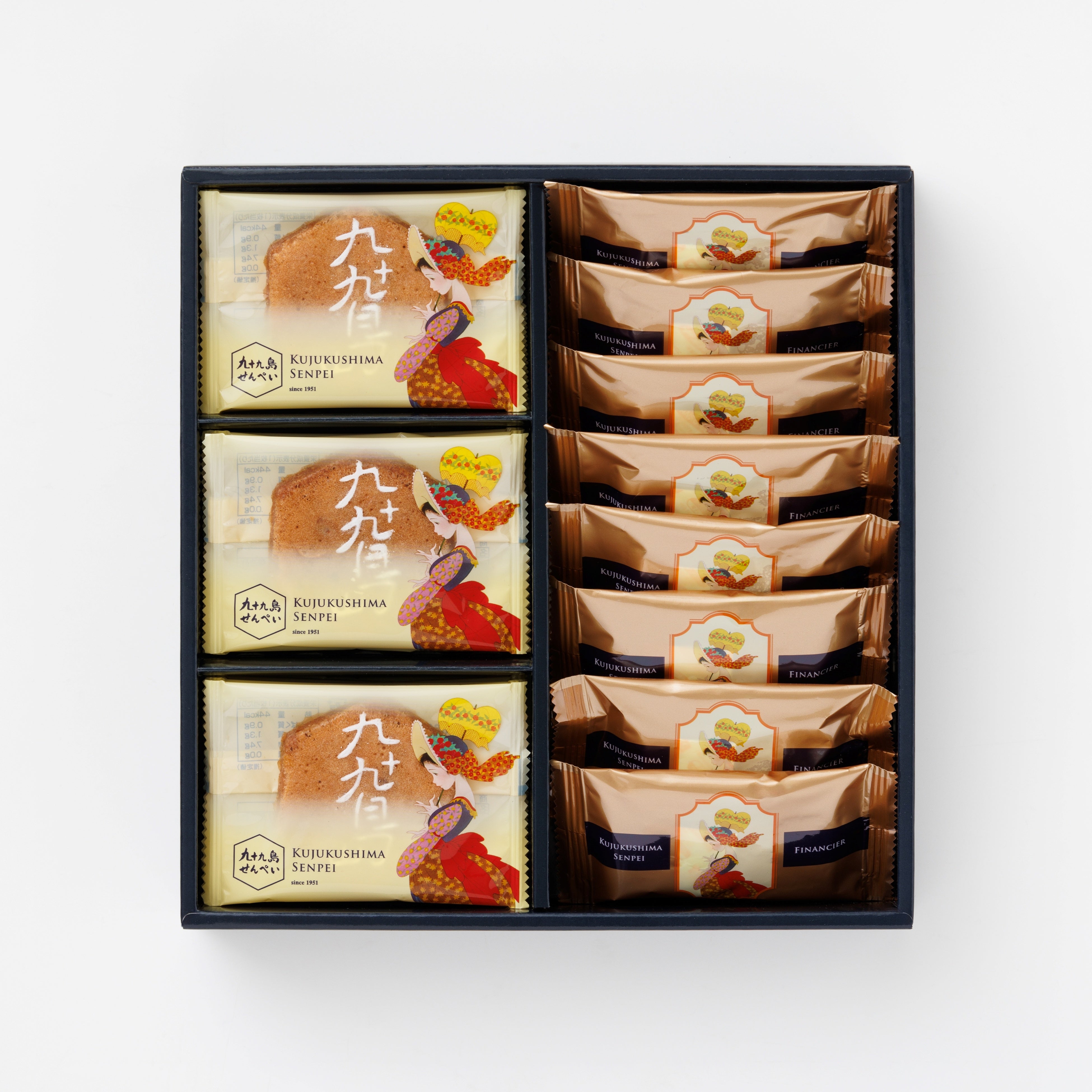 1951年のブランド誕生以来、長崎銘菓として愛され続ける「九十九島せんぺい」と、その伝統製法から生み出された「九十九島せんぺいフィナンシェ」を食べ比べて、それぞれの味わいをご堪能くださいませ。