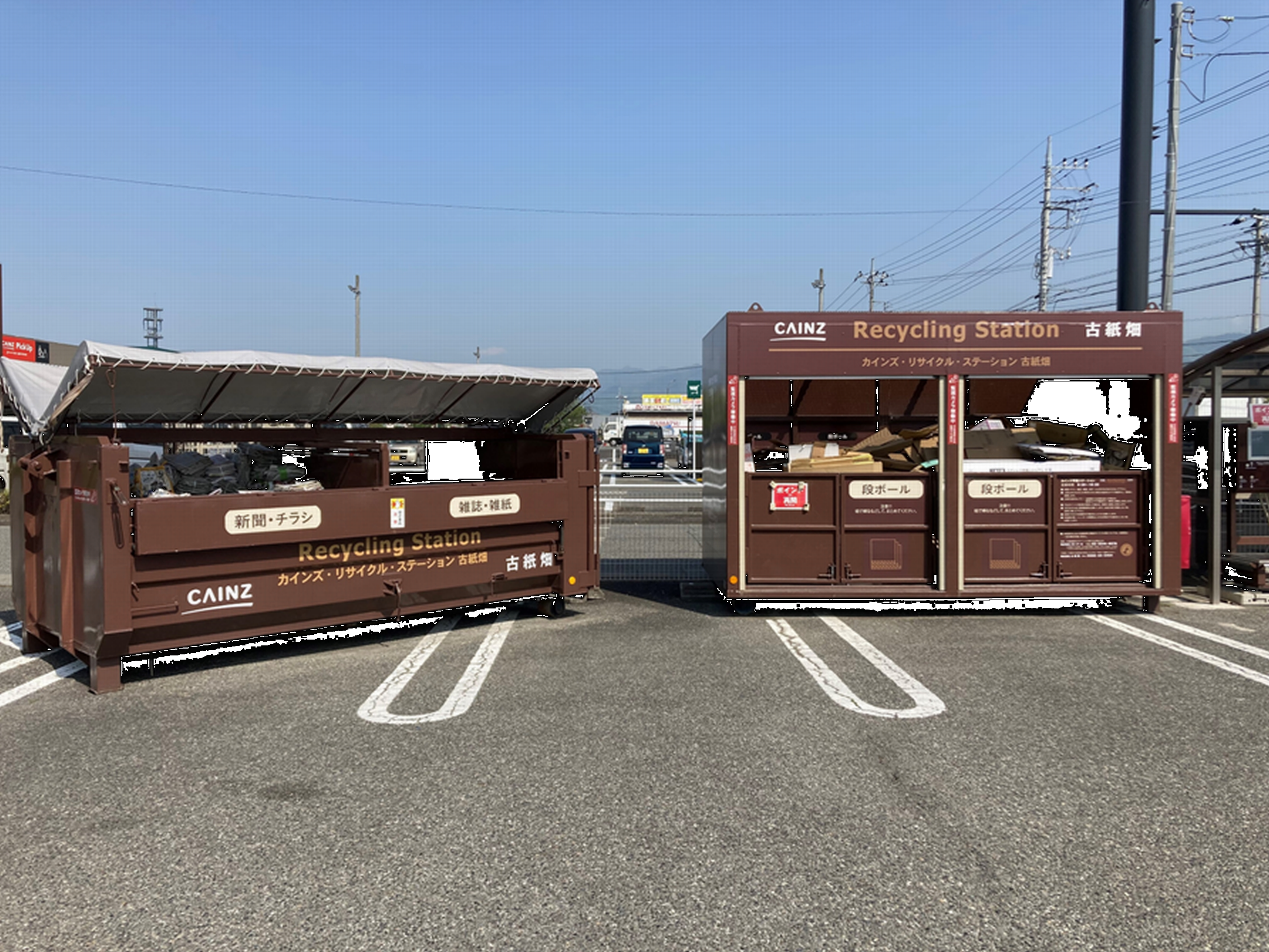 カインズ大宮店では、製品プラスチックの資源化を推進するべくプラスチック収納ケースの回収実証を、カインズ浦和美園店では、ご家庭で不用になった物品の回収・リユースの実証を、さいたま市や共創パートナーと連携して実施しています。また、両店舗には、古紙・段ボール・衣類等の回収拠点としてリサイクルステーションを設置。カインズ店舗が、大切な資源が循環するまちのハブとなるように、「サーキュラーステーション」化の取り組みを進めています。