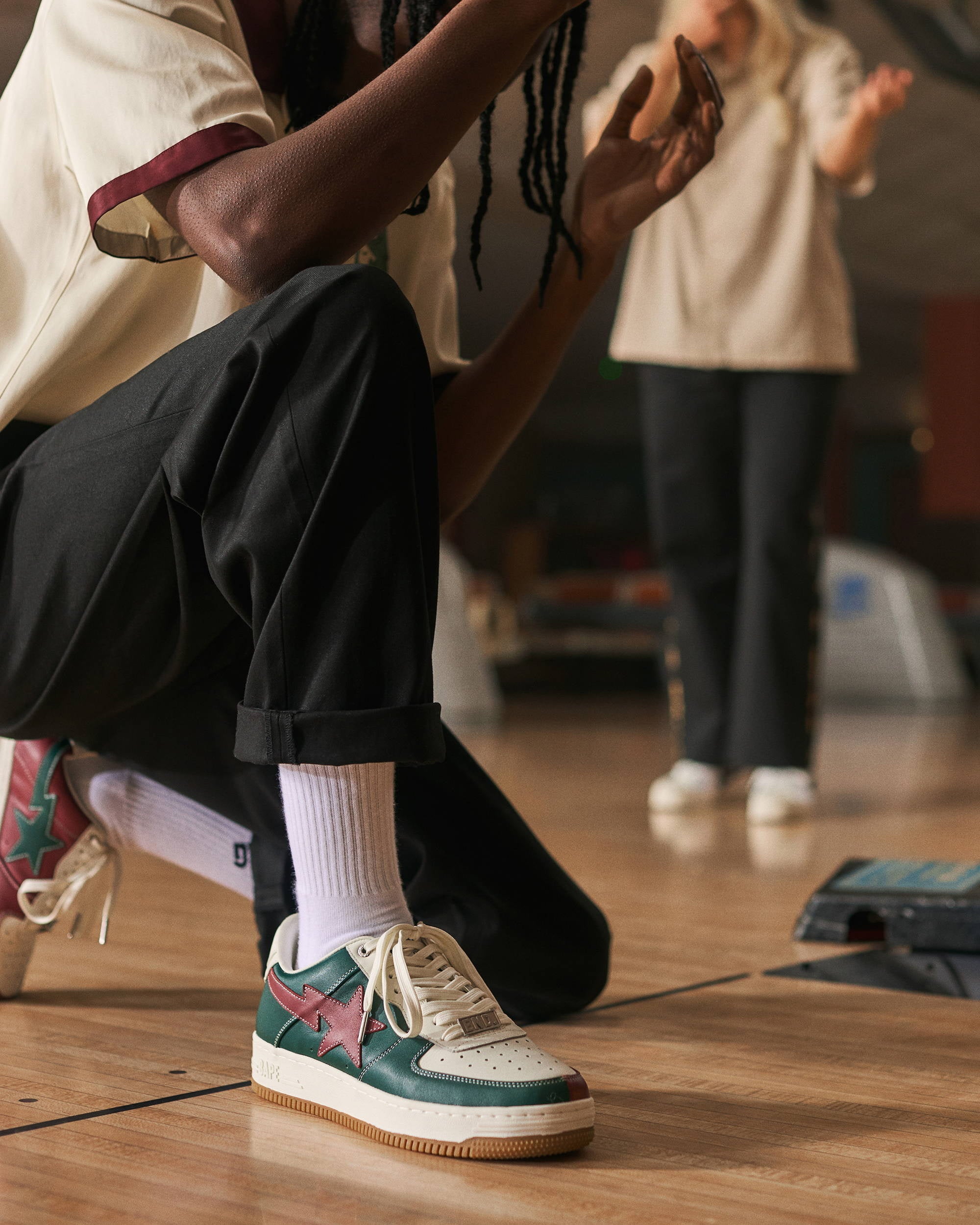 さらに、クロームコーティングが施されたEND.ブランドのシューレースステーや、インソールにはコラボレーションロゴがプリントされるなど、細部にまでこだわって仕上げられました。また、ボーリングボールとピンは、BAPE®のアイコンであるエイプのモチーフがプリントされ、コレクションをより一層盛り上げています。