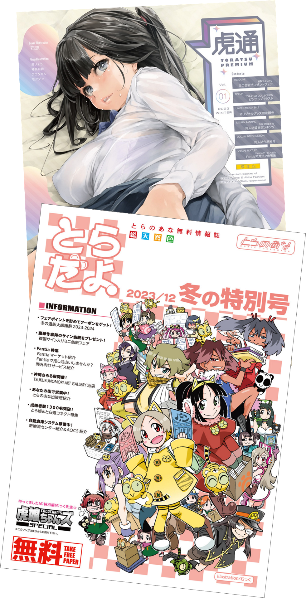 さらにコミックマーケット103に「とらのあな企業ブース」出展も決定。期間中コミケ会場では、「虎通Premium 創刊号」の特別価格での販売と、「とらだよ。冬の特別号」の無料配布を予定しています。