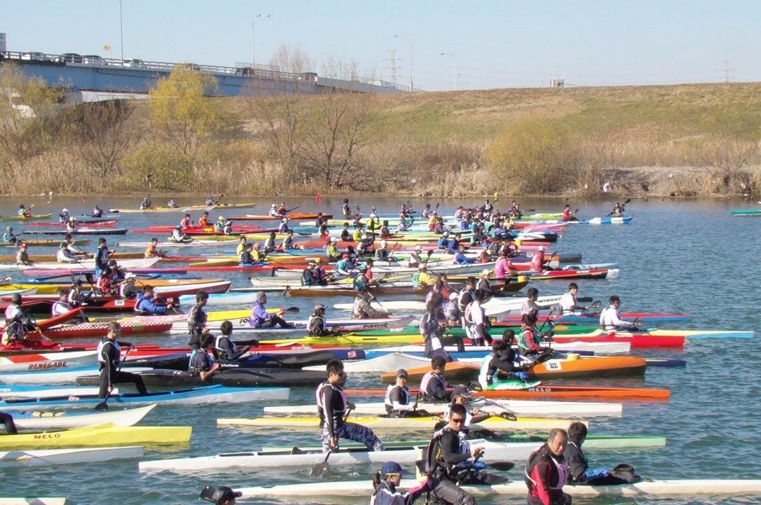 東京都と隣接する松戸市の江戸川では、毎年1月に、千葉県カヌー協会が主催するカヌー競技大会が開催されています。2023年の「千葉県知事杯争奪 第41回クラブ対抗カヌー競技大会」は日本で年明け最初に行われるリバーレースです。本大会は、たくさんの種類のカヌーで競技を行うことが特徴で、レーシングカヤックからシーカヤック、スラロームカヤックなど39のクラス・約400名の選手が出場し、全てのカヌーやカヤックが江戸川の川幅いっぱいに並んでの一斉スタートは圧巻です。