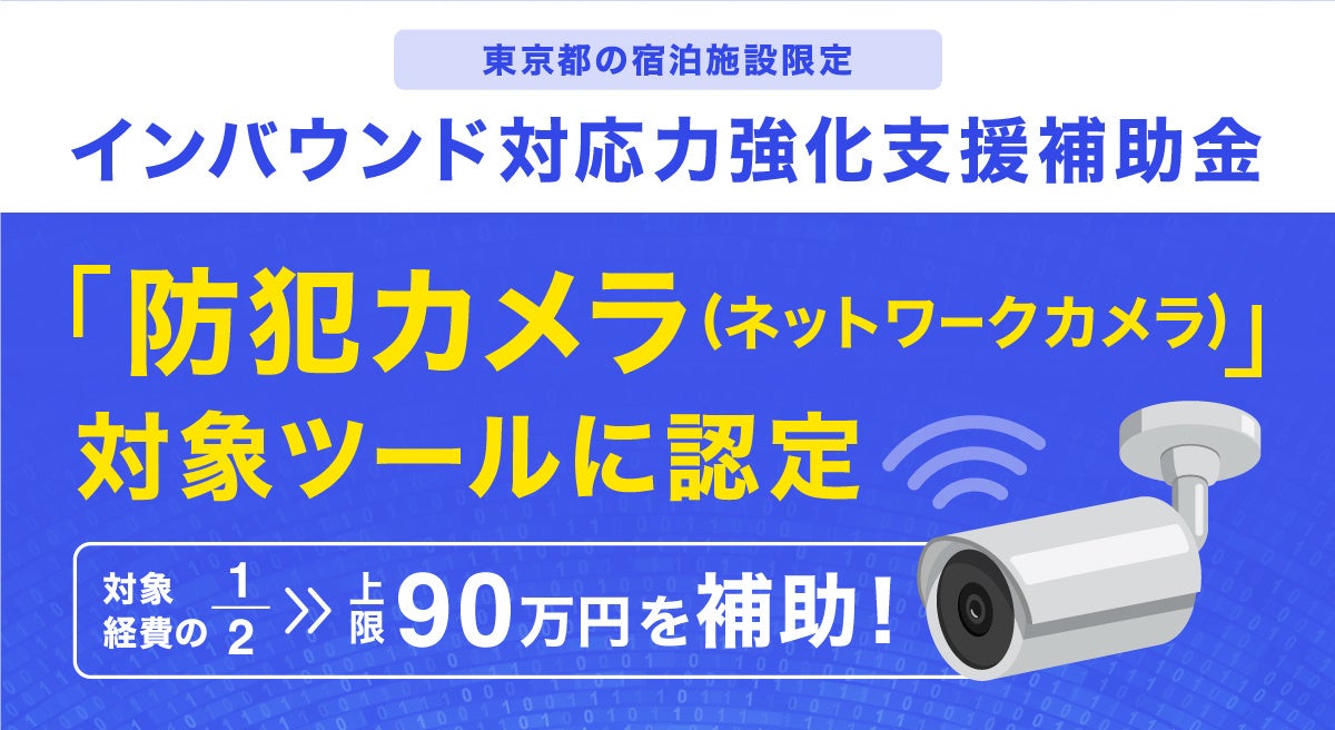 【インバウンド対応力強化支援補助金】東京都の宿泊施設限定!防犯カメラ(ネットワークカメラ) ―対象経費の2分の1、上限90万円を補助金として受け取り可能―