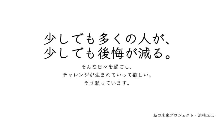 下記画像は、メディアインキュベートの浜崎による「未来プロジェクト」で実現したいことになります。あくまで参考です。むしろ参考にしていただかなくて結構です。