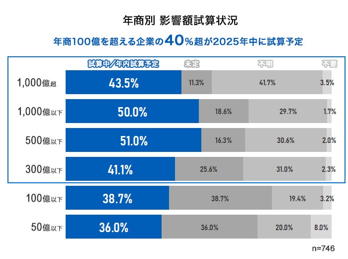 回答企業全体の44.6%が2025年中には影響額の試算に着手している結果になりました。