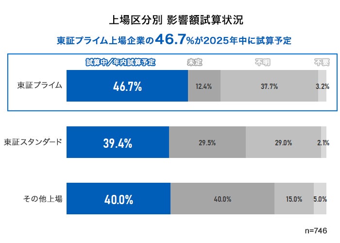 上場区分別では、東証プライム上場企業に勤める人の46.7%が、影響額を「試算中」または年内に開始予定と回答しました。